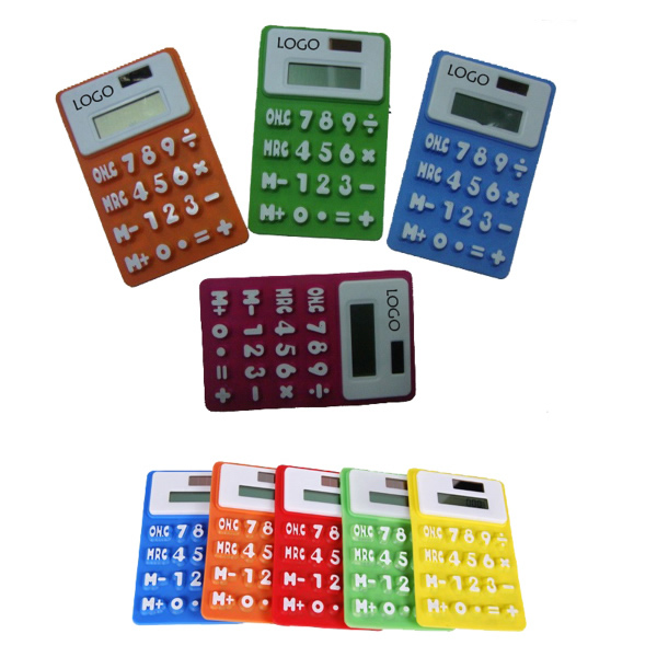 This colorful solar silicone calculator is made of 100% eco-friendly silicone. Solar powered calculator features large easy-to-see raised white numbers and function keys, soft and flexible silicone body available in a variety of colors, white plastic plate with a large digital display and an imprint area that prominently presents your business logo or message. Great giveaway item for business focused on children's education or anyone who wants to convey a more playful and adaptable corporate image. Price includes one color imprint on one side and FREE air shipping cost to 1 location in the lower 48 US states. QTY over 10K shipping by ocean.